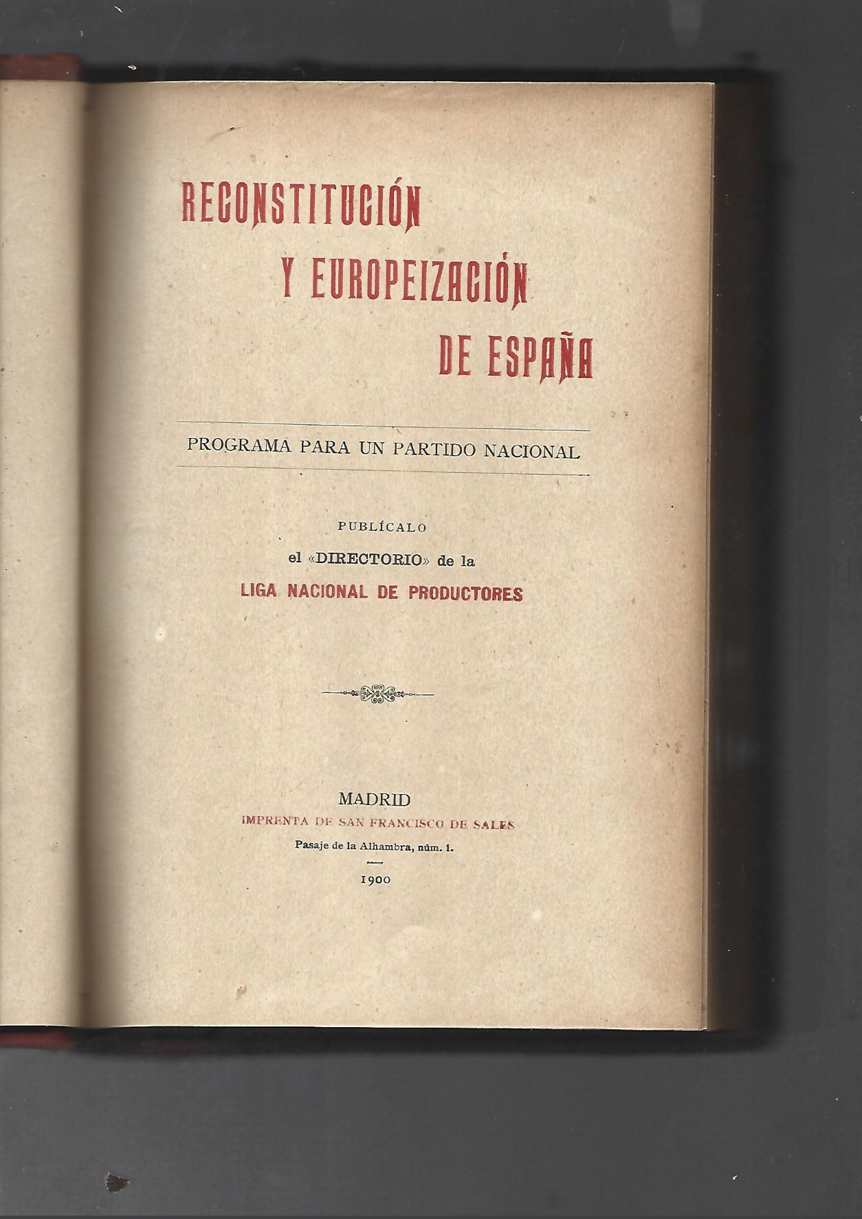 RECONSTITUCION Y EUROPEIZACION DE ESPAÑA programa para un partido nacional